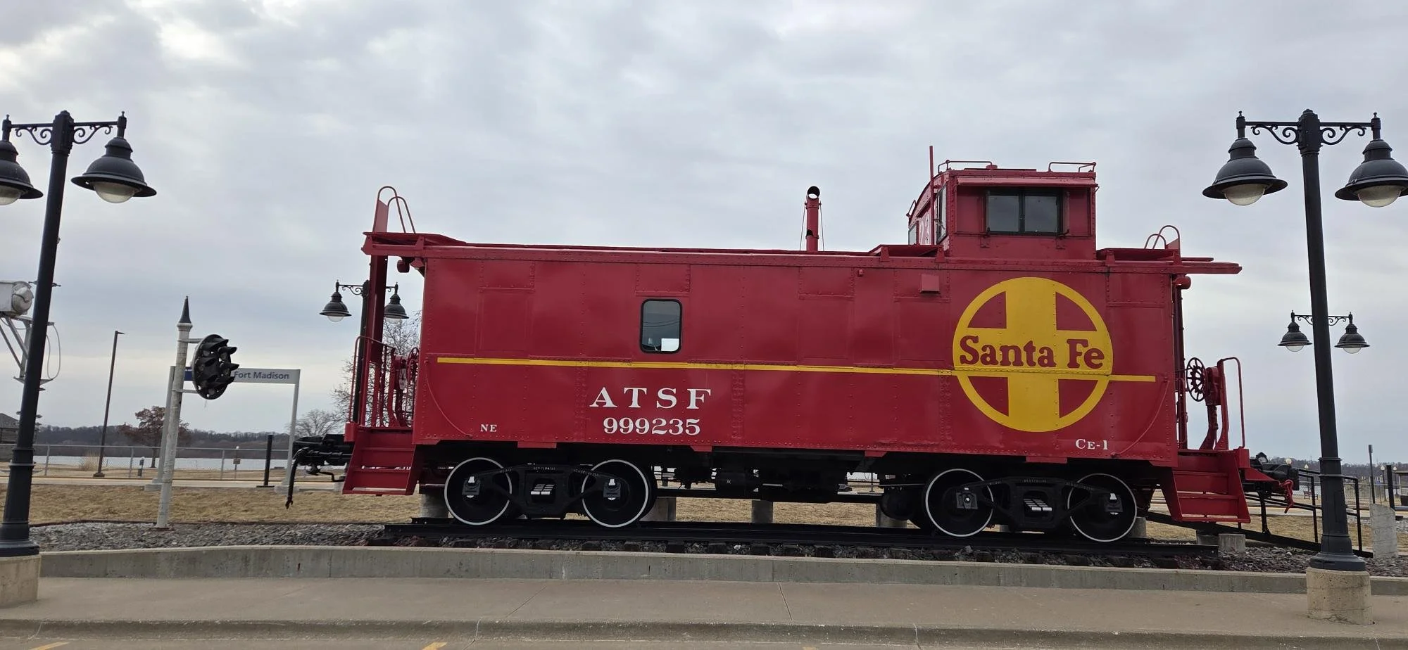 Also in the same city park is the Fort Madison Santa Fe Depot, home to an active Amtrak train. To day’s riders use the historic depot’s waiting room. The building also houses the Fort Madison Visitors Center and a historical museum. The Santa Fe is built in the Mission Revival Style in 1910. Outside the depot sit a restored Atchinson, Topeka, and Santa Fe engine along with an tank car and caboose.